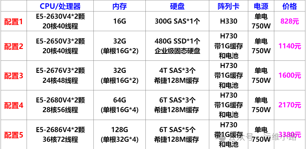 下面这些是我历史曾经想买的几种服务器,我简单的做下介绍: