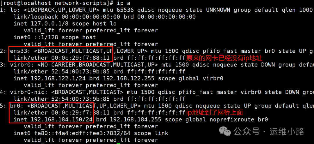 cp ifcfg-ens33 bak2.2 配置桥指向br0