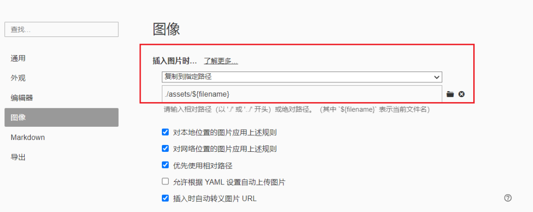 这样,对应文章的所有图片都在一个文件夹下,若文章需要迁移目录,直接将附件一起拷贝即可,方便管理。