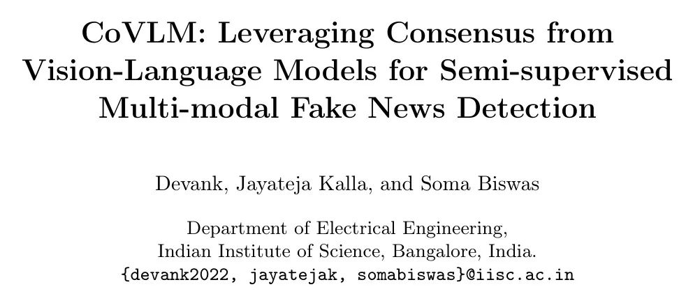 CoVLM: Leveraging Consensus from Vision-Language Models for Semi-supervised Multi-modal Fake News Detection.