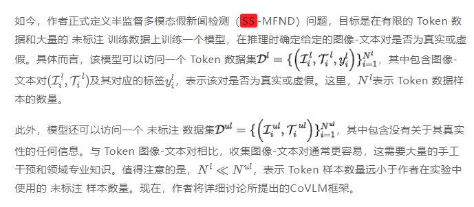 在本文中,作者提出了CoVLM,一种用于半监督多模态虚假新闻检测的新颖框架,旨在在有限的 Token 数据和大量 未标注 数据下有效运行。