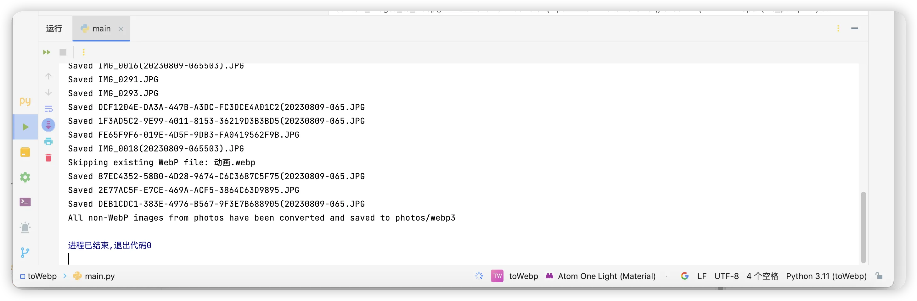 主要流程就是将非webp的图片转换后丢到指定目录,已经是webp的就直接丢过去。
