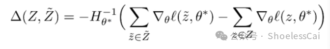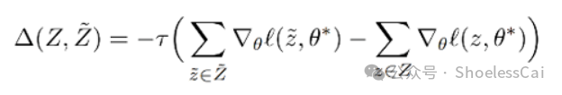 (1) 其中,Δ 意味着距离,或者称为“度量”。既然是遗忘算法,我们之后还会获知一种,“遗忘之后的度量”。以下等式(2)和等式(3)分别表示,一阶线性变换的距离,以及二阶变换的距离,其中一阶变换使用的是“遗忘率”。 这里的一阶和二阶都是针对 Loss Function 的求导,不同情况下同一个点,即 realistic Z,以及 ideal Z_。代入求得梯度,各个维度相加,得到两个数值,然后其差和“遗忘率”相乘。 二阶情况,涉及 Hessian 矩阵的计算和存储。
