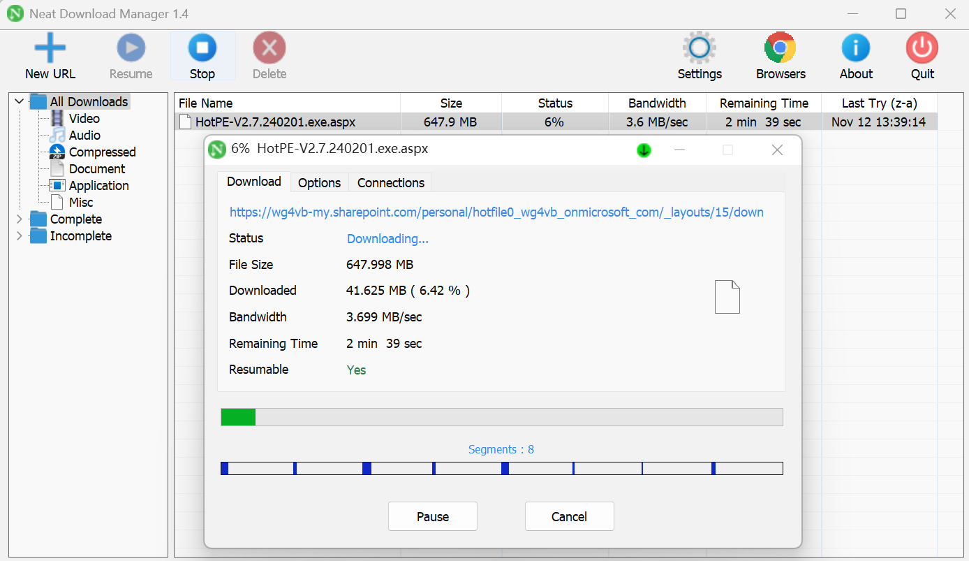 下载慢的话,可以先点下载按钮让浏览器产生下载链接,然后复制链接到多线程下载工具NDM下载如果很慢,可以试试这个免费的多线程下载神器,默认8线程,可调最大32线程,下载速度杠杠的。