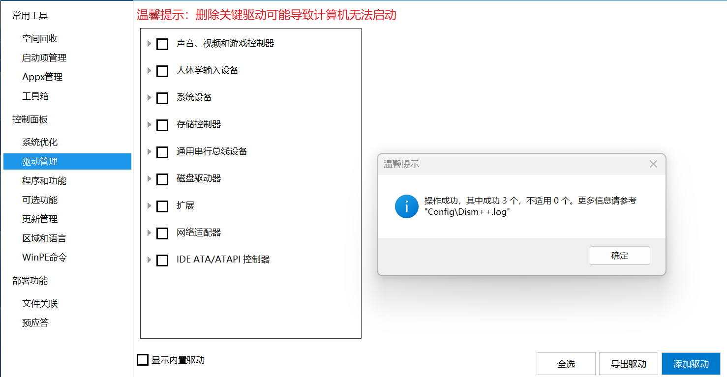 3、用Dism++x64.exe加载上步的.WIM文件给它集成腾讯云驱动