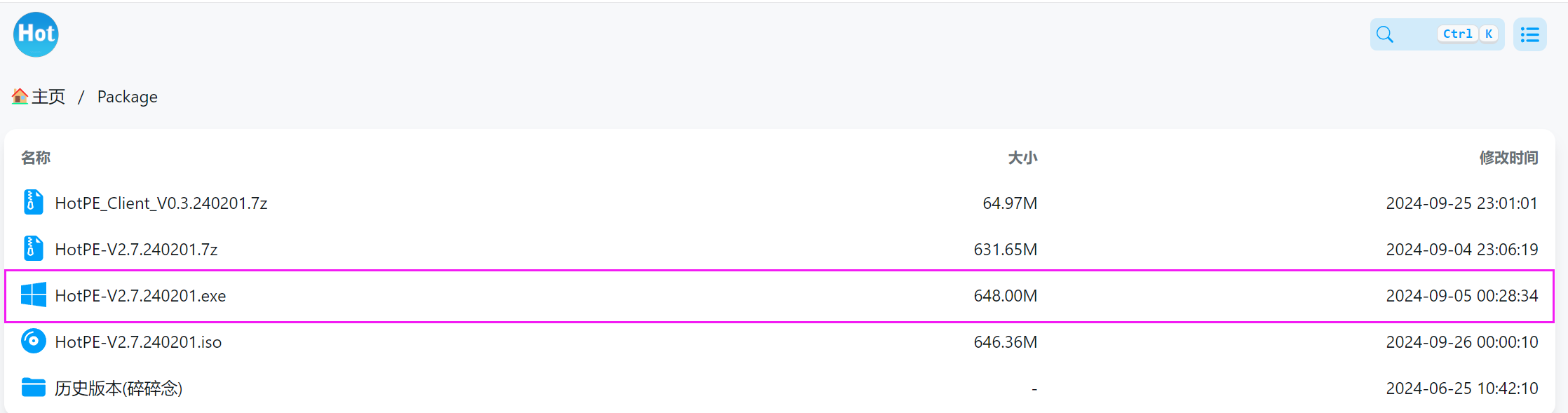 1、下载HotPE的.exe安装文件生成iso,或者直接下载iso也行