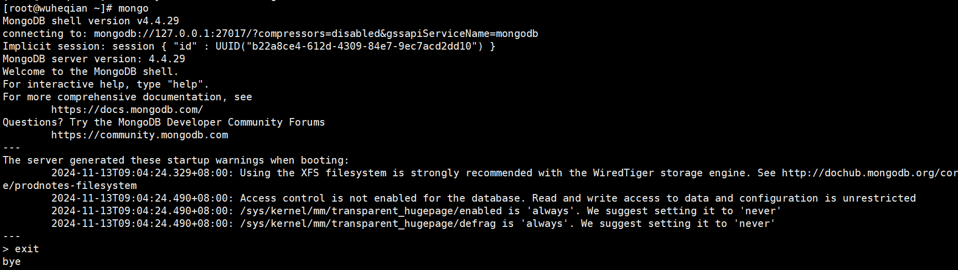 sudo systemctl enable mongod你也可以通过连接到 MongoDB shell 来验证: