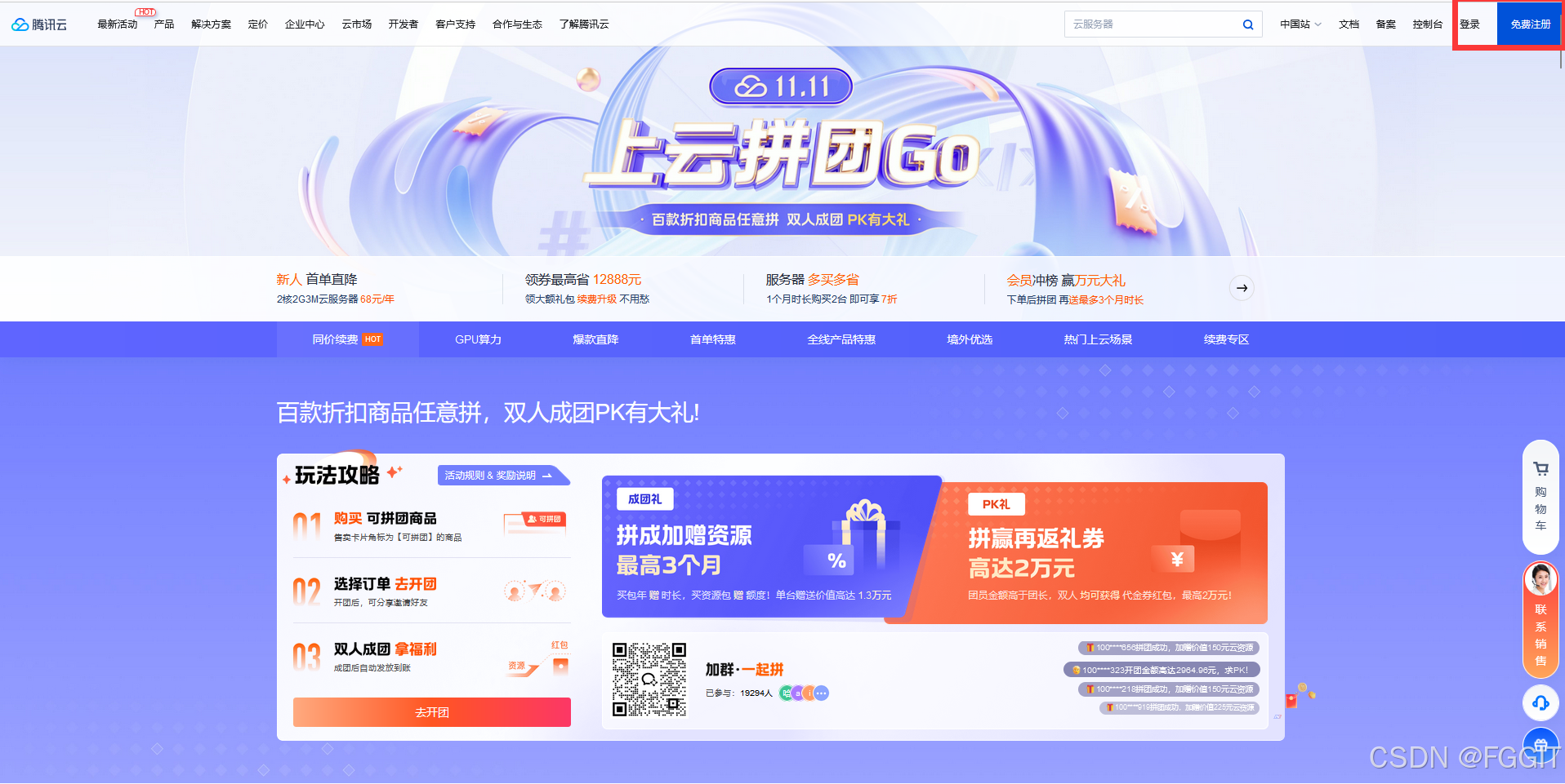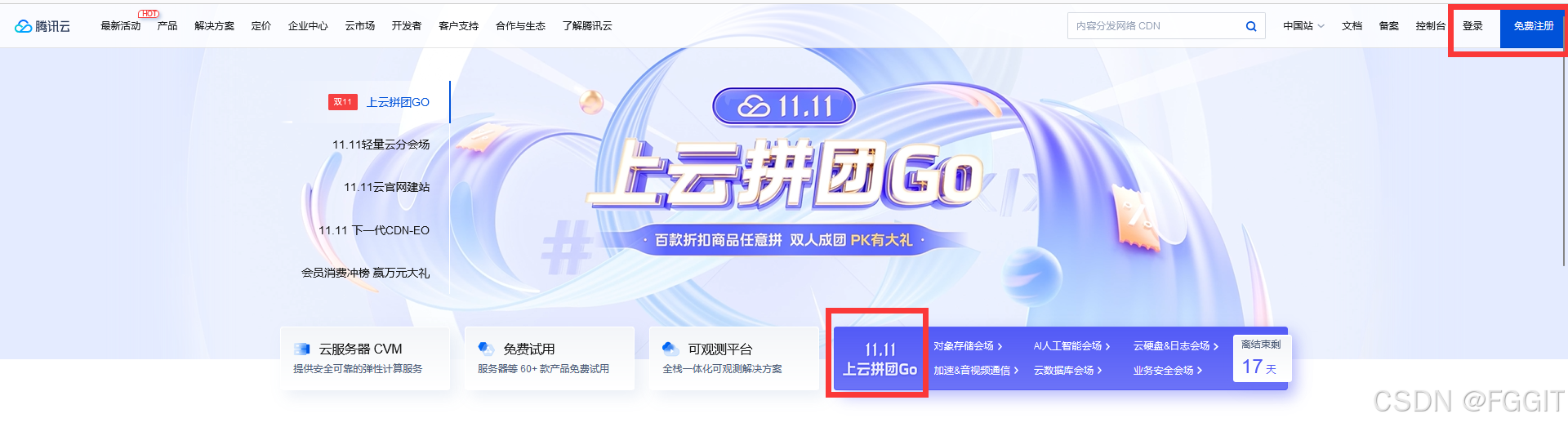 前往腾讯云双11活动入口,没有账号需注册,注册完登录即可参加褥羊毛活动