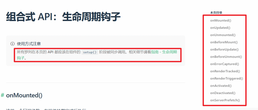 在实际项目中,若需要在生命周期的其他环节,进行函数处理,可以再去阅读官网(https://cn.vuejs.org/api/composition-api-lifecycle#onerrorcaptured),选用合适的钩子函数,完成预期的功能即可。