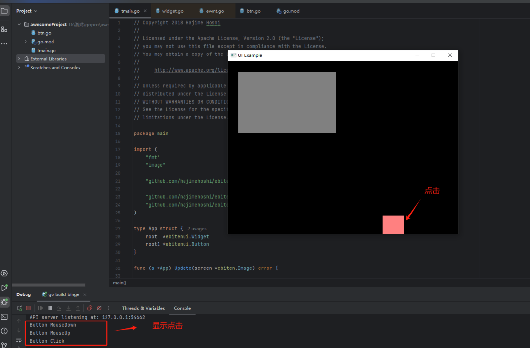 下面给大家分享一个另外的Ebitengine引擎的按钮点击实例,效果如下: