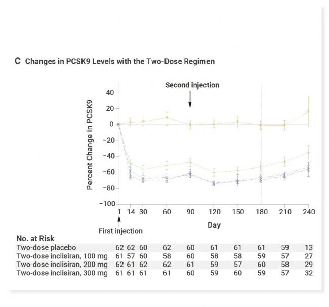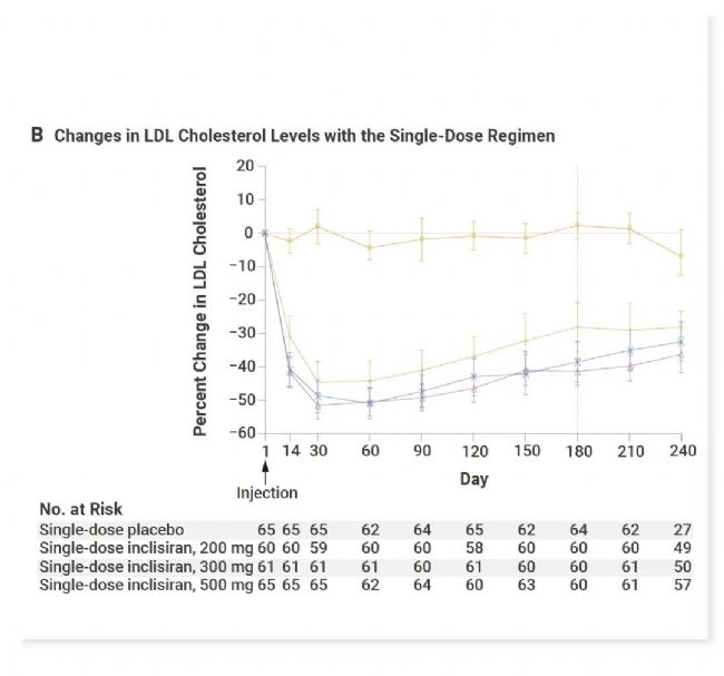 [5] Ray KK, et al. Inclisiran in Patients at High Cardiovascular Risk with Elevated LDL Cholesterol. N Engl J Med. 2017;376(15):1430-1440.