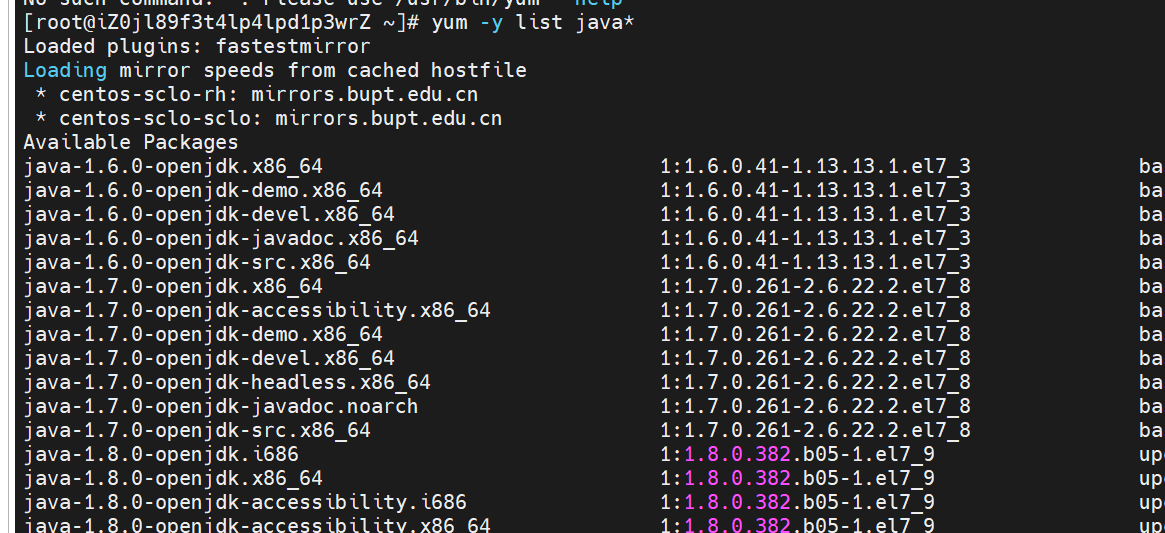 yum -y list java*显示如下,本次安装选择使用java-1.8.0-openjdk.x86_64版本