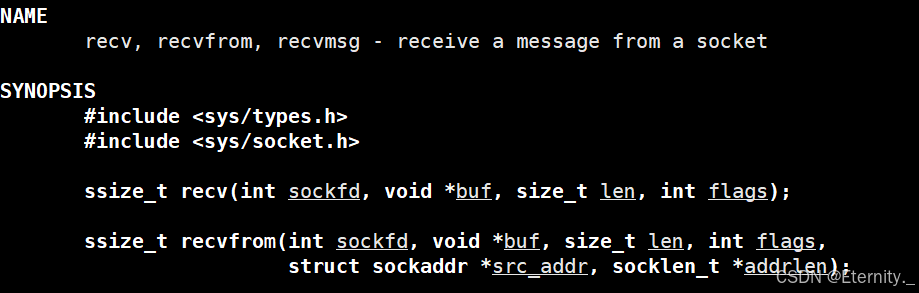 ssize_t recvfrom(int sockfd, void *buf, size_t len, int flags,