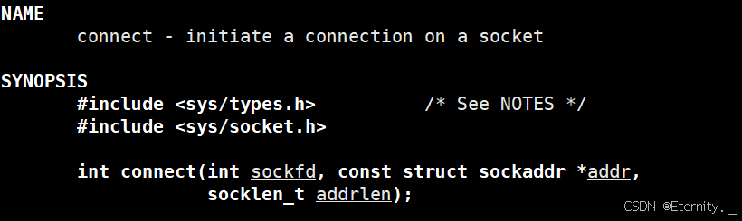 int connect(int sockfd, const struct sockaddr *addr,