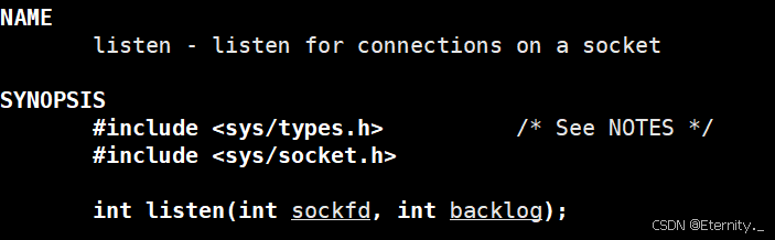 int listen(int socket, int backlog);