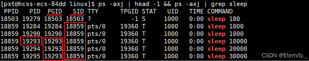 我们同时创建的sleep 10000,sleep 20000,sleep 30000,会不会在同一个进程组里面呢?我们可以查询一下