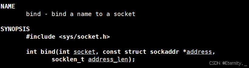 int bind(int socket, const struct sockaddr *address, socklen_t address_len);