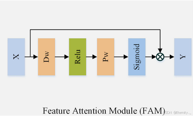在该模块中,使用Depth-wise卷积和Point-wise卷积来取代传统特征注意力中的普通卷积,以进一步增强特征提取能力和上下文特征的理解能力。通过这种独特的设计,所提出的FAM能够从通道和像素的角度增强结果的上下文特征,Depth-wise和Point-wise的实现如下: