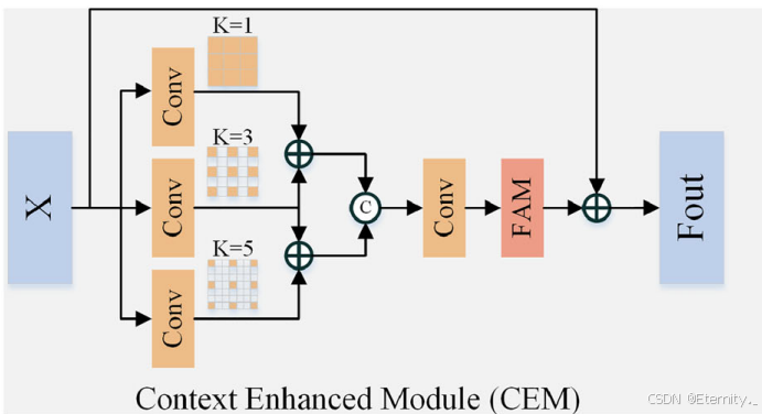 self.conv4 = nn.Conv2d(2 * inchannel, outchannel, 3, padding=1)最后经过特征注意力模块增强效果之后与该模块的输入X相加得到最终的输出。