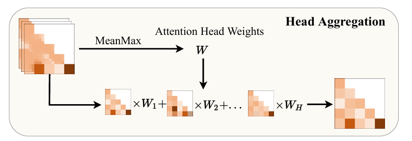 之后,采用 Mean-max 的方式对多头注意力图进行聚合,如图 2 所示: