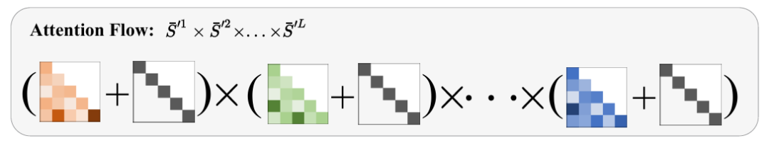 在聚合多头注意力图之后,采用注意力流的方式进一步聚合多层注意力图,如图 3 所示