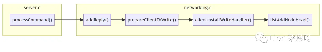 }(7)写数据到缓冲区。processCommand函数调用addReply,addReply调用prepareClientToWrite将数据写到缓冲区。prepareClientToWrite调用clientInstallWriteHandler,clientInstallWriteHandler调用listAddNodeHead将任务写到clients_pending_write全局队列,又开始任务派发到IO多线程处理。 接下来的写流程和读流程差不多。
