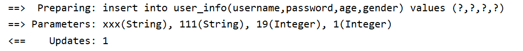 System.out.println("影响行数:" + integer + ",自增id:" + userInfo.getId());