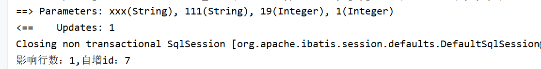 方法的返回值还是影响行数,也是成功拿到了自增 id