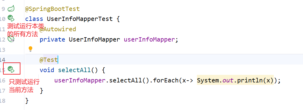 除了上面的测试方法之外,还可以使用 idea 自动生成测试类