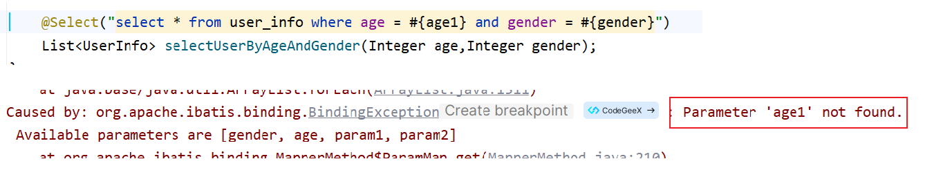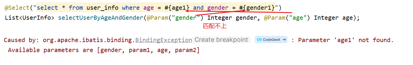 @Select("select * from user_info where age = #{age1} and gender = #{gender1}")