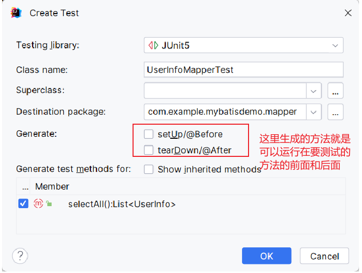 然后就可以选择要测试的方法,就会自动生成单元测试类