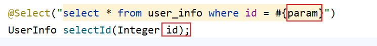 @Select("select id, username, password, age, gender, phone, delete_flag, create_time, update_time from user_info where id= #{aa}")
