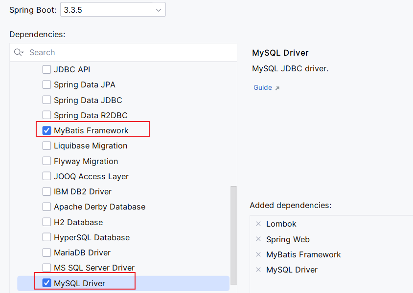 然后还需要添加以下依赖,Lombok 和 web 依赖也可以加上