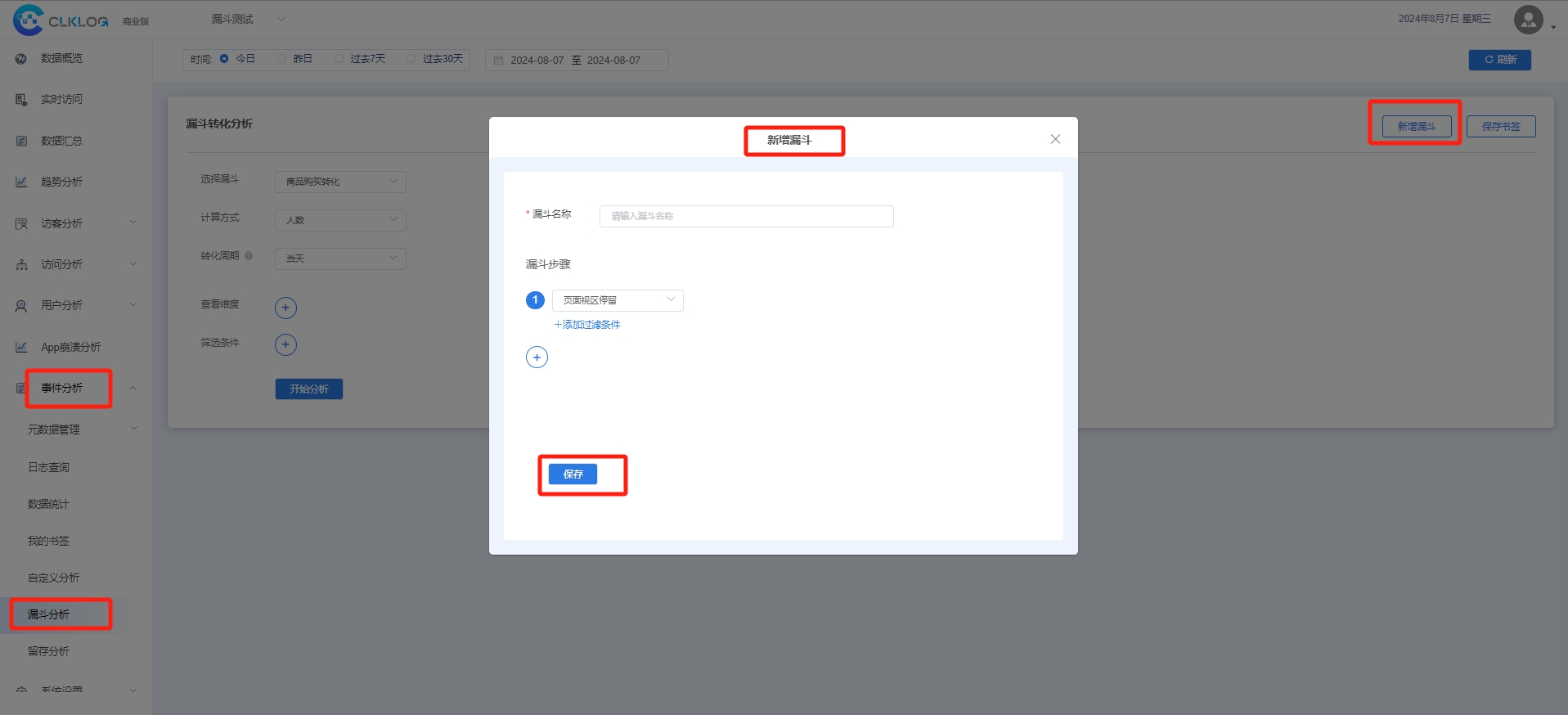 点击【新增漏斗】,创建漏斗模型步骤进行保存。
