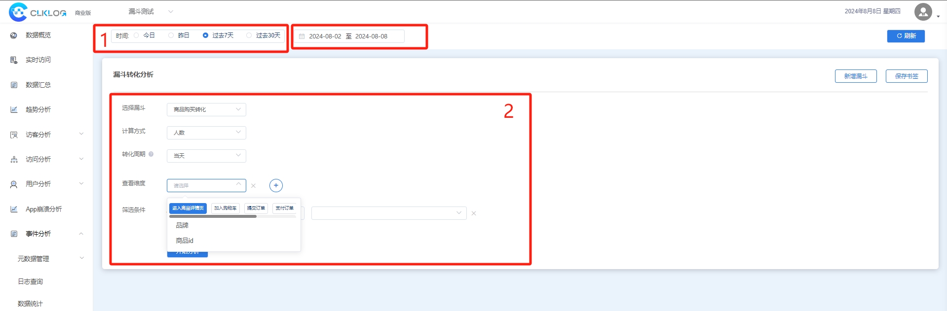 路径:官网>演示环境>商业版>事件分析>漏斗分析