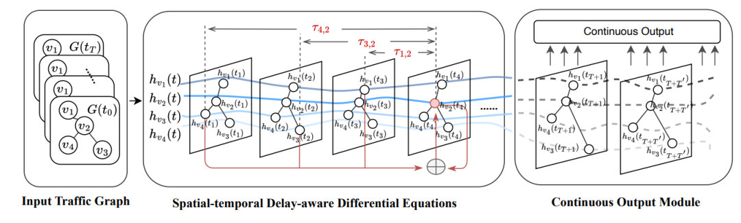 摘要:交通流预测是交通规划和管理的基础研究问题,是时空预测的典范和典型。近年来,图神经网络(GNN)和循环神经网络(RNN)在捕获时空相关性以进行交通流预测方面取得了巨大成功。然而,两个不可忽视的问题尚未得到很好的解决:1)GNN 中的消息传递是即时的,而实际上相邻节点之间的空间消息交互可能会延迟。一个节点的流量变化需要几分钟(即时间延迟)才能影响其连接的邻居。2)交通状况不断变化。交通流预测的预测频率可能根据具体场景要求而变化。大多数现有的离散模型需要对每个预测范围进行重新训练,限制了它们的适用性。为了解决上述问题,本文提出了一种神经时空延迟微分方程模型,即 STDDE。它将延迟效应和连续性纳入统一的延迟微分方程框架中,该框架明确地模拟了空间信息传播中的时间延迟。此外,还提供了理论证明来证明其稳定性。然后设计了一个可学习的流量图时延估计器,它利用隐藏状态的连续性来实现梯度后向过程。最后,提出了一个连续输出模块,使我们能够准确预测各种频率的交通流量,这为不同场景提供了更大的灵活性和适应性。大量的实验表明了所提出的 STDDE 的优越性以及具有竞争力的计算效率。
