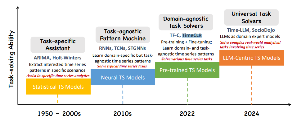 - 时间序列分析对于理解现实世界系统中的动态变化至关重要,但现有的时间序列模型主要依赖于领域知识和模型调整,且多聚焦于预测任务。
