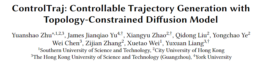 机构:南方科技大学,香港城市大学,香港科技大学(广州),约克大学(本文的一作也是DiffTraj的一作。应该是个延续工作)