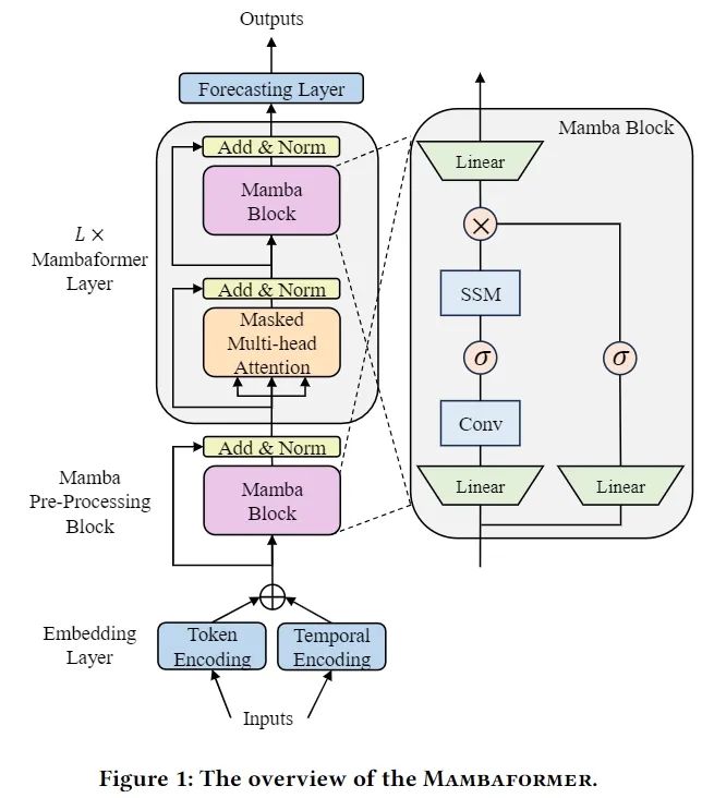 TL; DR:本文提出了一种结合Mamba和Transformer的混合模型,用于提高长期和短期时间序列预测的准确性。(就5页)