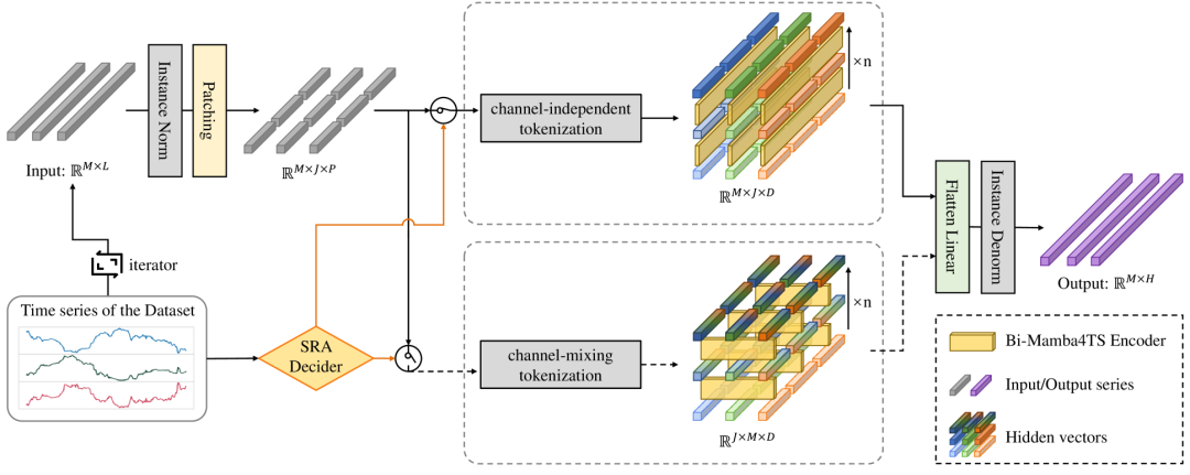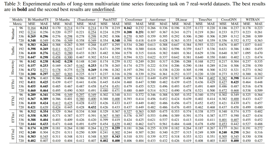 TL; DR:本文提出了一个名为Bi-Mamba4TS的新型双向状态空间模型,用于长期时间序列预测,通过选择性输入数据处理和硬件感知并行计算,有效平衡了计算效率和预测性能。
