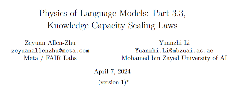 TL; DR:本文探讨了语言模型在不同条件下存储知识的能力,通过控制实验和理论分析,发现即使在参数量化到int8的情况下,模型也能存储每个参数2比特的知识,且这些知识可以灵活地用于下游应用。