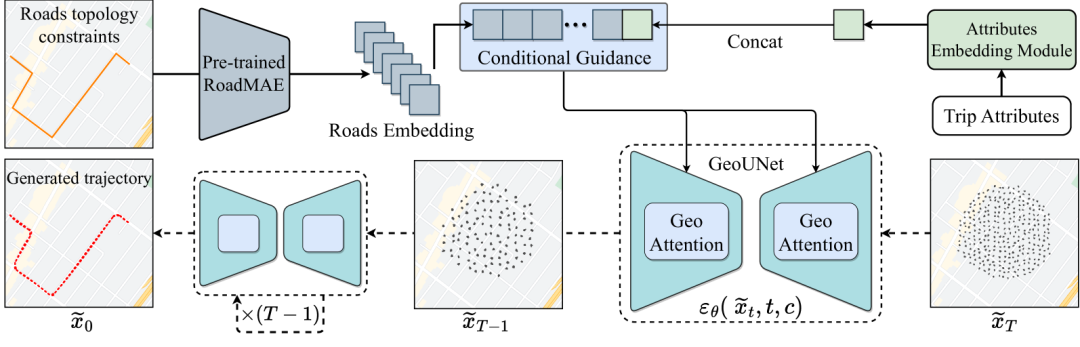 关键词:轨迹生成、可控性、高保真、扩散模型、道路网络拓扑、城市规划、位置基础服务。
