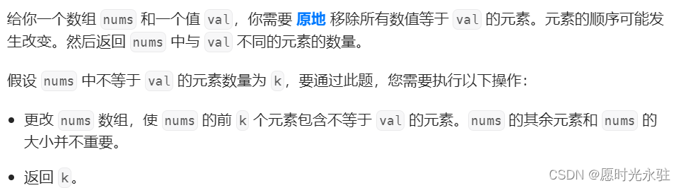 2.如果src指向的值不为val,则把src指向的值赋给dest(nums[dest]=nums[src]),赋完值之后src++,dest++