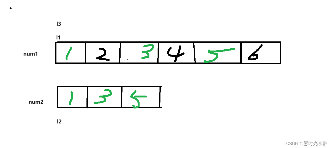 如果l2>=0,那么就是l2中的数据还没有完全放到nums1中