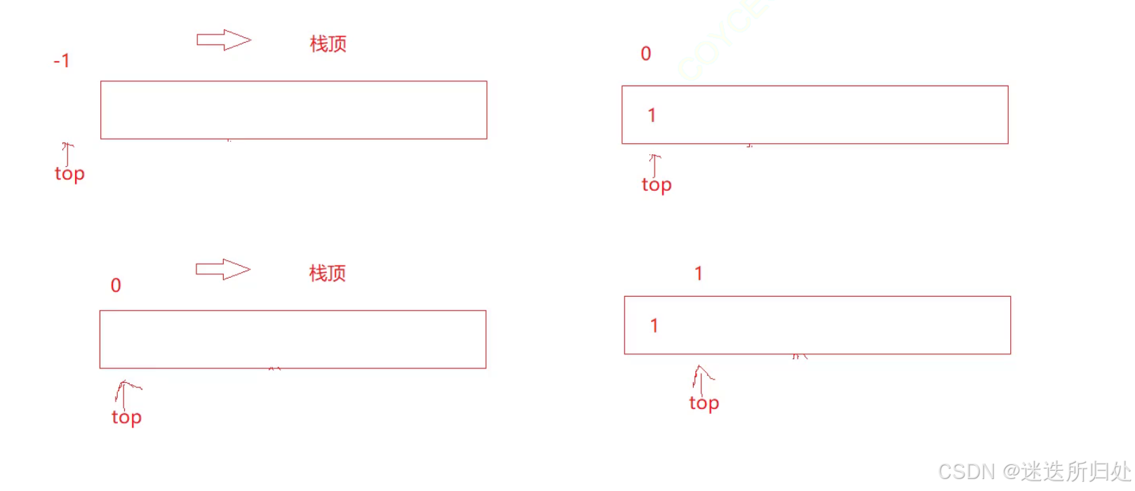 出栈:栈的删除操作叫做出栈,出数据也在栈顶