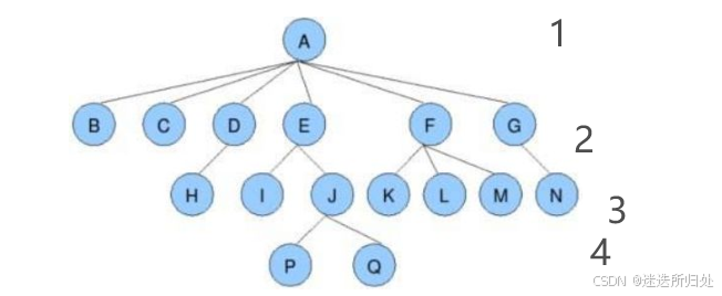 结点的层次:从根开始定义起,根为第1层,根的子结点为第2层,以此类推