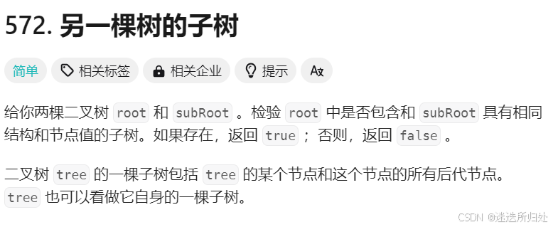 1. 判断一棵二叉树是否为另一棵二叉树的子树: