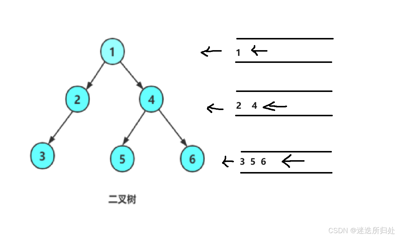 利用其先进先出的特性并结合二叉树实现层序遍历
