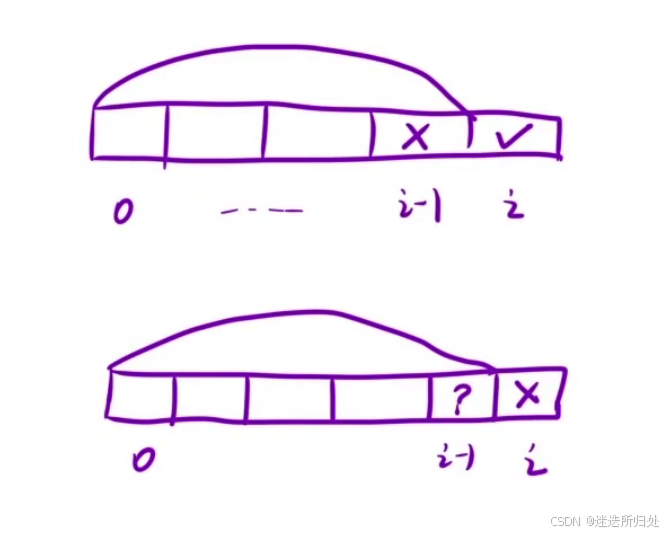 2. 状态转移方程 根据最近的一步来划分问题: 到达dp[i]有两种情况: 1. f[i]=g[i-1] + arr[i] 2. g[i]:a. 当选择i-1的位置时:f[i-1] b.当不选择i-1的位置时:g[i-1] g[i]=max(f[i-1],g[i-1])
