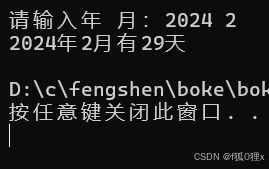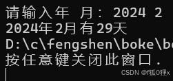 这里其实还有更简单的方法,其实我们只需要设置一组数组,输入对应月份就是访问对应数组下标,然后再判断该年是不是闰年,是闰年的话2月的天数+1就行了,这样就可以节省许多的步骤